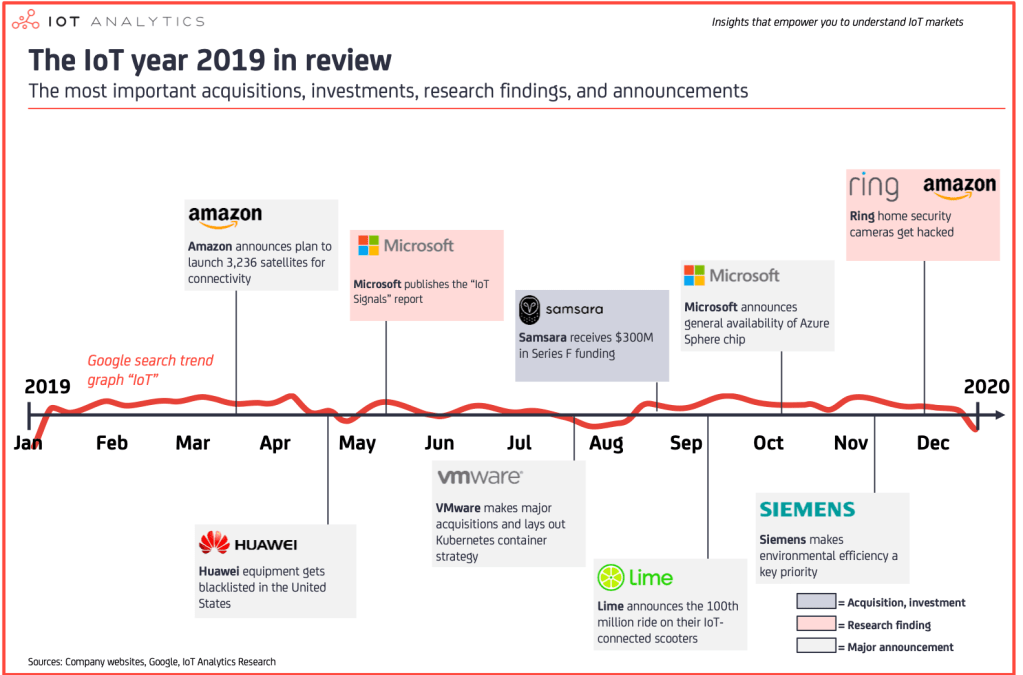 According to IoT Analytics estimates, there were roughly 9.5 billion connected IoT devices at the end of 2019. That number is significantly larger than the forecast of 8.3B devices. The 3 main drivers: